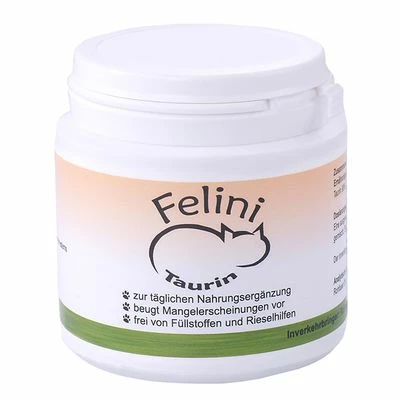 Taurin är ett nödvändigt näringsämne för katter, eftersom katten själv inte kan producera detta ämne. Felini Taurin ges som fodertillskott direkt i kattens vanliga måltider för att tillgodose kattens dagliga behov av taurin.