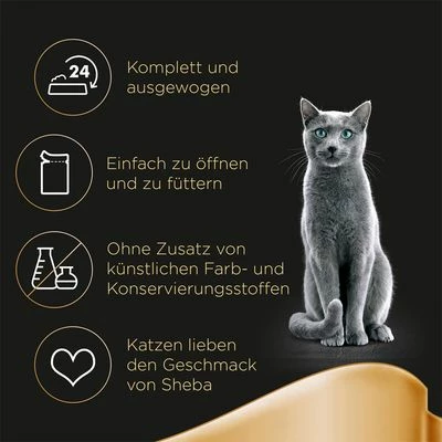 De avvägda måltiderna för alla vuxna katter innehåller inga konstgjorda aromämnen eller konserveringsmedel. De praktiska 85 g portionspåsar är enkla att servera ur och gör det möjligt att överraska din delikatessälskande kisse med nya smaker om och om igen. Skäm bort din katt med Craft Collection från Sheba!